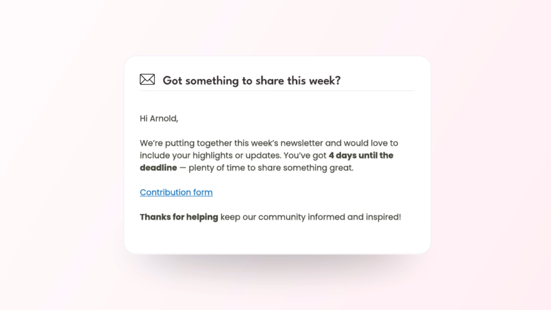 Stop chasing. Stop compiling. One-click newsletters.